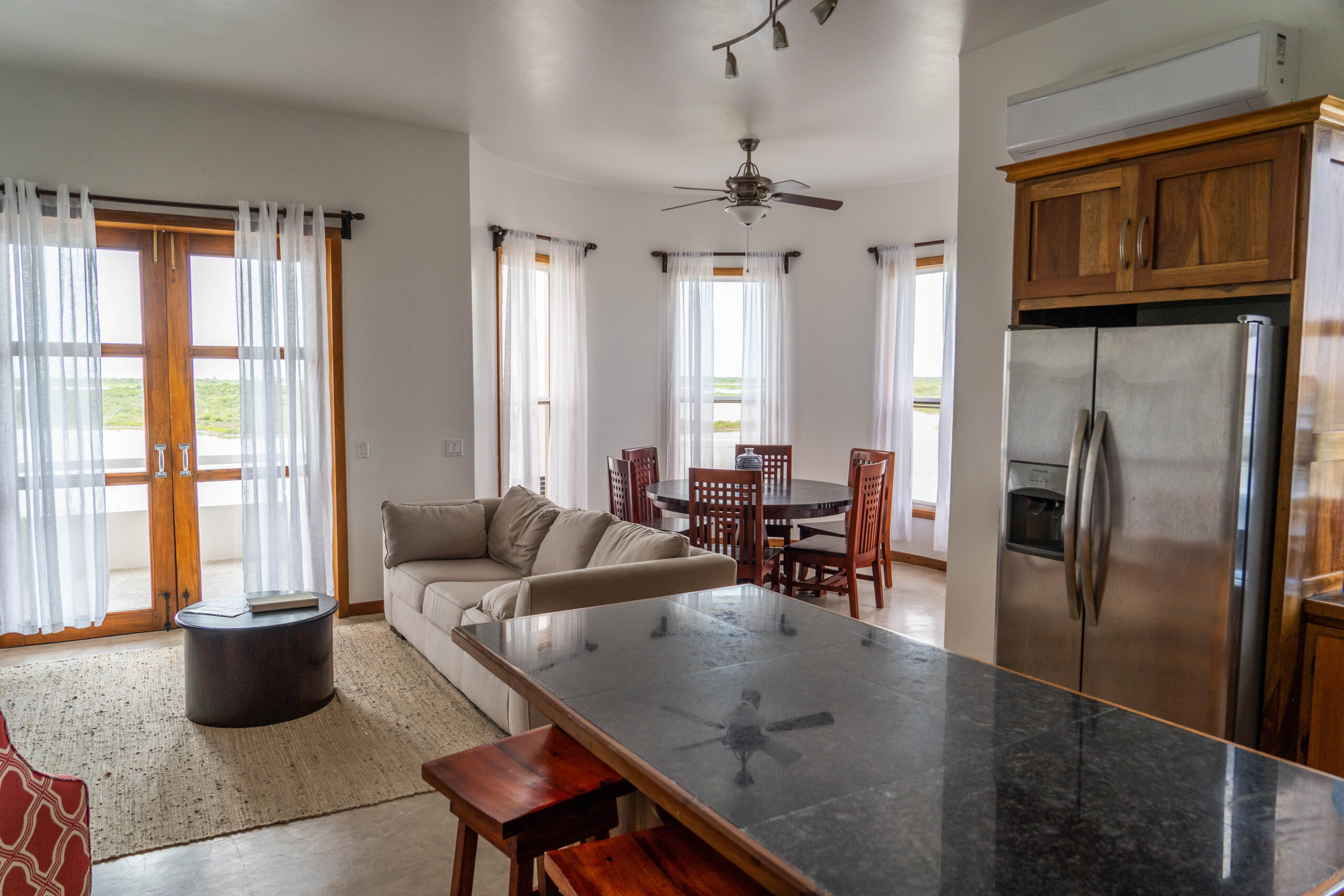 A masterful design and one of the most modern island luxury properties that San Pedro has to offer. The 3 bedroom 3 bath penthouse has a total of 3500 square feet floor plan located on the 4th floor. Every detail was carefully selected and quality crafted with a private deck and outdoor Jacuzzi overlooking the west coast beach, bird sanctuary, and unobstructed sunset views. Enjoy the generously sized living/dining area that exudes modern island elegance and stylish finishes – a perfect setting for relaxing and entertaining for you and the family. Moreover, the dining area has a quarter moon-shaped glass window making it perfect for a sunset dinner. The spacious chef’s kitchen is carefully laid out to suit your needs: from spacious cabinets made out of beautiful mahogany hardwood, stainless steel & high-end appliances, and carefully chosen marble countertops. Other special highlights include a stunning unobstructed setting for the town’s annual firework display which can be seen from your balcony or from your east-master suite. The west-master suite has its own private balcony with an inviting, relaxing Jacuzzi and a perfect sunset view. You’ll also love the convenience of its onsite restaurant, pool, bar, spa & oasis, tour guides, boat captain, paddle boards, kayaks, and the best of it all, it’s located on a private island – far but yet close for convenience with only a 5 minutes boat ride to or from the island of San Pedro Town and also it’s only an 18 Minutes boat ride to Secret Beach which is considered to be the best beach on the island for its spectacular bluish crystal clear water.